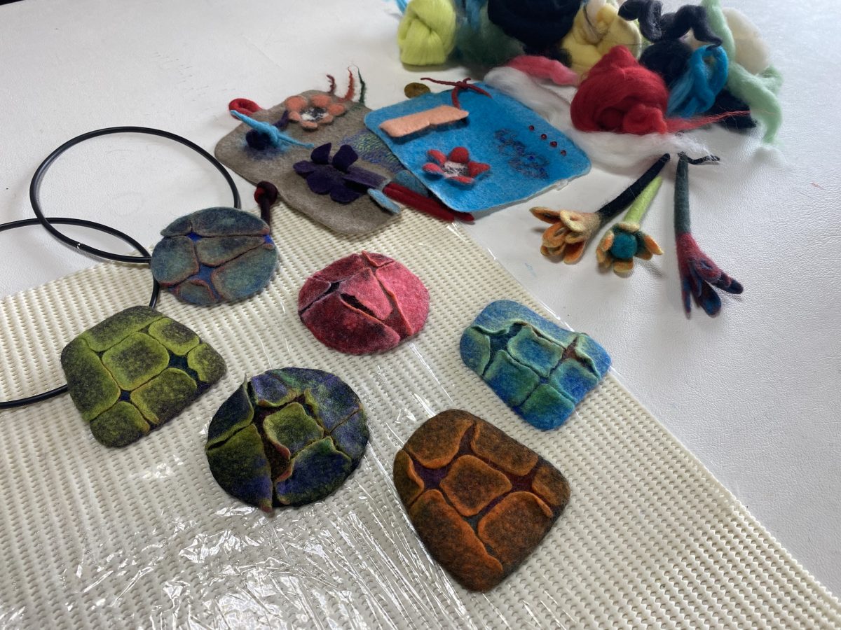 Those new to felt will be guided through the fundamentals with a clear, step-by-step demonstration, beginning with a small ‘Flower Object’ before progressing to a personal Fragment Pendant or Brooch…