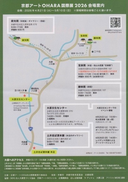 In addition to the Ohara Cultural Center, exhibitions will also be held at various temples in the area, such as Jakko-in, Hosen-in, Shorin-in, and the gallery inside the Doi Shibazuke main store, all nestled in the beautiful environment of Ohara.